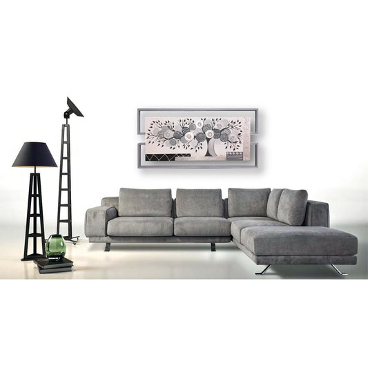TOILE DOUBLE ABSTRAITE, COULEURS GRISES, DÉTAILS ARGENTÉS, TOILE DE BASE ARGENTÉE