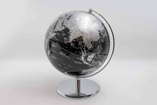 Globe terrestre élégant avec base en acier argenté – Carte détaillée Ø 30 cm