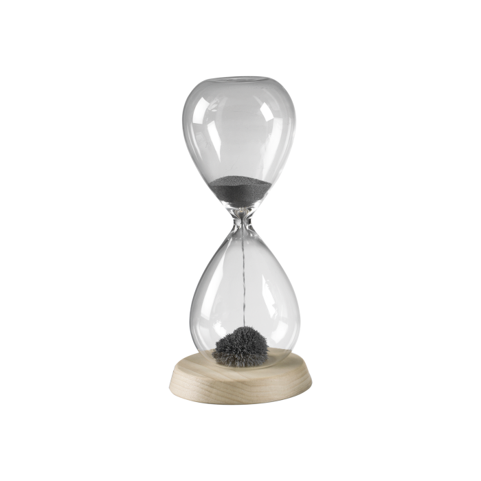 Sablier magnétique avec base ronde en bois et sable de fer Hauteur 16 cm