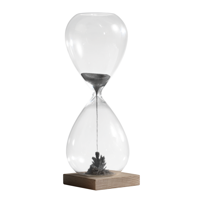 - Magnete innovativo: Ogni volta che la clessidra viene capovolta, il magnete attira la polvere di ferro creando formazioni uniche e affascinanti.