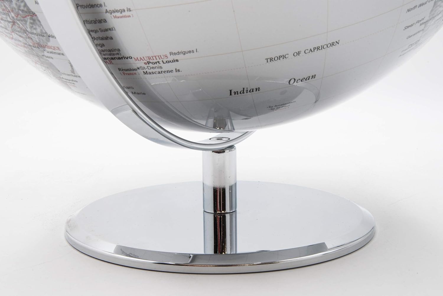 An elegant globe, perfect for decorating any space with style. The silver-plated steel base lends a modern and refined touch, while the clear and detailed map offers a precise and comprehensive view of the continents, ideal for those seeking a balance between functionality and design.